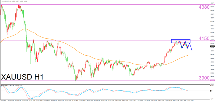金价昨日晚间如预期中承压回落,盘中低点触及4100美元/盎司,后续的反弹也没能突破新高,显示出上方的阻力确实存在,今日晚间操作上延续昨日的高空思路,只要没有突破昨日高点,都可以把握好盈亏比尝试进场空单。