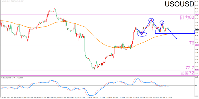 空单:77.6-77.7美元/桶 止损80.2美元/桶之上 止盈77.0-77.1美元/桶