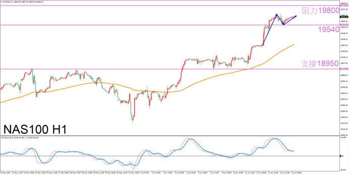 纳指昨日晚间持续走高,不过涨幅相较前一日已经明显收敛,晚间操作上可以参考前一日的回调低点进场多单,若跌破前一日低点则多单可以暂时离场,等回调结束再进场。