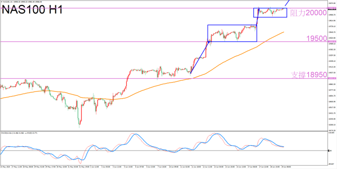 纳指昨日晚间基本维持在20000大关下方徘徊,过程中的波动不大,考虑到今日将休市,这样的走势预计将延续到周四,操作上可以不用太积极,目前整体还是处在上涨格局当中,呈现出阶梯式上涨,预期得回调没有出现,看一下休市后得状况再决定方向。