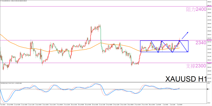 多单:2340-2341美元/盎司 止损:2335美元/盎司之下 止盈:2350-2351美元/盎司