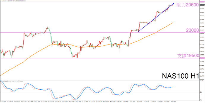 纳指昨日晚间持续性上涨,在多头格局没有改变的状况下继续做多,只要注意上方距离原先的200点目标已经很近了,操作上不用拿太久,小赚就可以先离场,高位多单要注意停利。