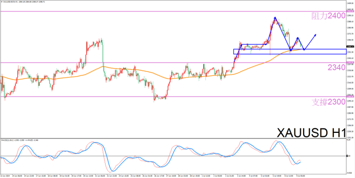 多单:2350-2352美元/盎司 止损:2343美元/盎司之下 止盈:2365-2366美元/盎司