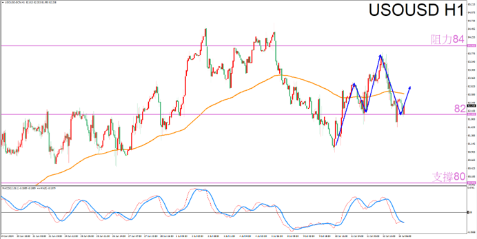 多单:82.0-82.1元/桶 止损81.5美元/桶之下 止盈83.4-83.5美元/桶