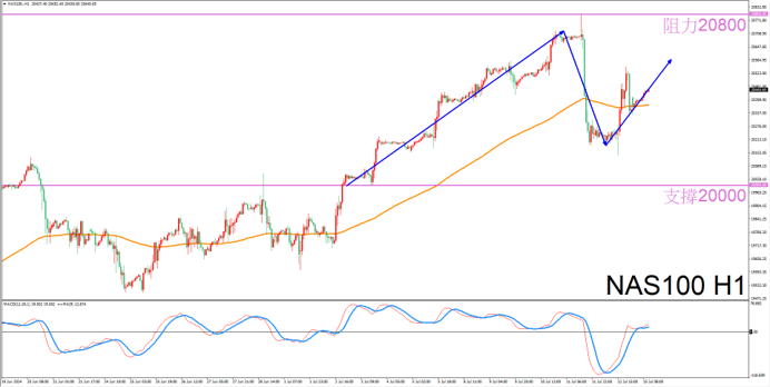 纳指上周五晚间止跌后有一波反弹出现,特朗普的遇袭没有造成太大的利空影响,股市依然很坚挺,晚间预计可以吞回日间的跌幅后继续走强,操作上以多单为主。