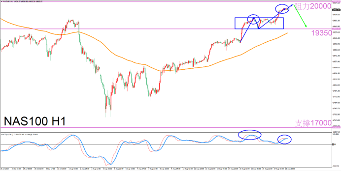 纳指昨日晚间继续上涨,没有跌破前一个转折低点,就算MACD持续顶背离也没有回调的讯号,今日操作继续等待跌破空的机会,上方越靠近阻力越要慎防大型回调,多单不建议继续追多入场。