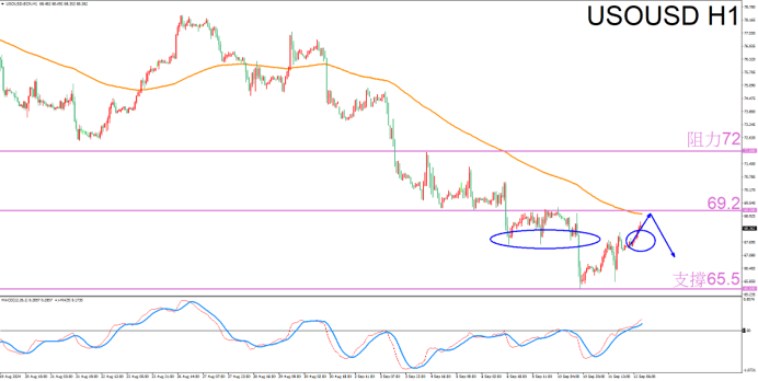 空单:69.1-69.2美元/桶 止损69.6美元/桶之上 止盈68.0-68.1美元/桶