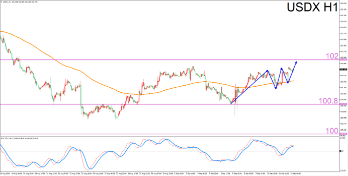 美指昨日晚间一度下挫后又反弹,整体还是有稍微走高的状况,预计今日晚间有机会突破九月初时的高点位置往102迈进,晚间操作上偏向多方思路。