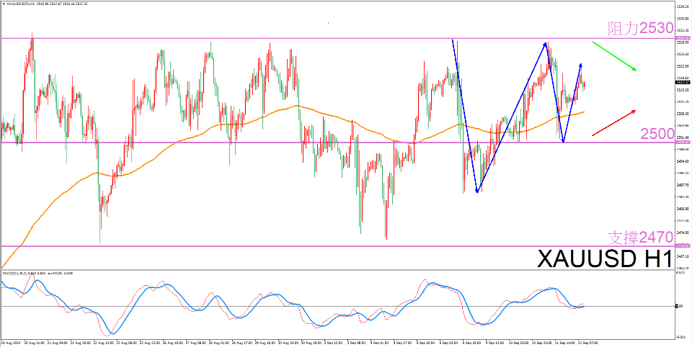 数据方面,美国8月CPI持续放缓,年率降至2.5%低于预期,核心年率维持3.2%,通胀下降主因是受到汽油等商品价格下滑影响,数据一出美联储下周降息两码机会大幅缩小,市场主流预测还是以一码为主。