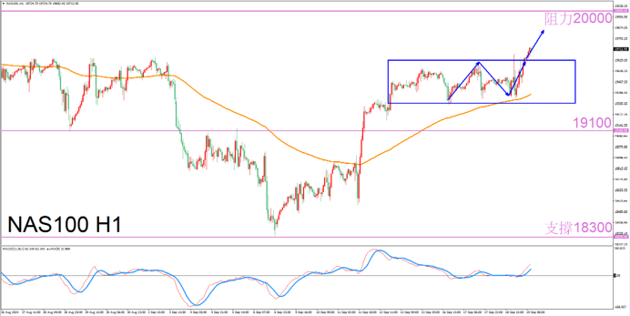 纳指昨日虽然没能以上涨做收,但盘中有冲高回落的状况,今日午后已经刷新新高,整体的多头格局获得延续,晚间操作上以多单为主,可将止损放于本周原先的震荡区间上轨之下即可。