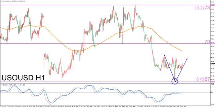 多单:68.0-68.1美元/桶 止损:67.5美元/桶之下 止盈:69-69.1美元/桶