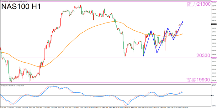 纳指上周震荡上行,最终周涨1.7%,收复了11月回调的部分失地,短线多头反弹格局没有被破坏,晚间操作上维持多头思路,可先参考长期均线做为止损依据。