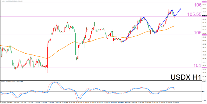 美指昨日小幅回调后晚间继续刷新高点,创下六月以来的新高,今日午后有高点转折的迹象,晚间可能会是一波下跌后再走强的多头走法,操作上可以先关注前期高点105.55一线,该位置是强势的顶底转换位,大支撑还是在105。