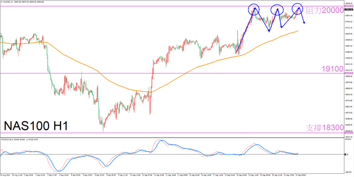 纳指昨日晚间没有进一步回调,不过也还没有突破阻力,晚间操作上建议是延续昨日的思路,在还没有突破20000大关之前都可以尝试空单,若突破后则可以转追多进场。