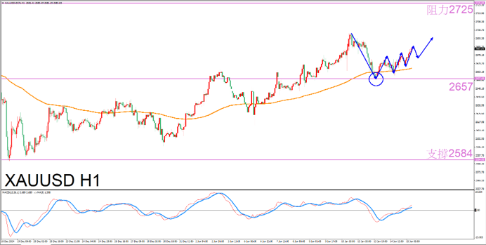 金价昨日晚间没有再度测试2657美元/盎司的周低点,短线呈现出多方反弹的格局,晚间操作上延续昨日的思路,预期可以吞回上周五的跌幅,进场后可以将目标放远一些。