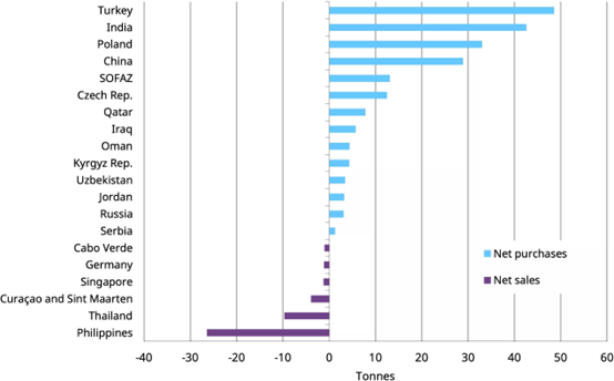 (图1)今年至8月央行黄金储备变化