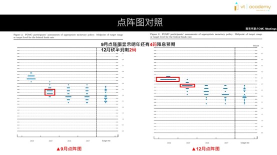 在美联储12月利率决策会议上,FOMC以11:1的投票结果宣布降息至4.25%-4.5%,这一决定符合市场预期。然而,新发布的位图却带来了市场震动。与9月相比,2025年的降息预期从4码骤降至2码。